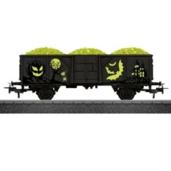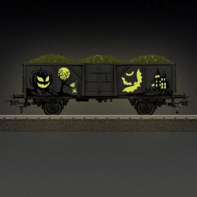 Dieser spektakuläre Güterwagen von MÄRKLIN ist der Eyecatcher auf jeder Anlage. Teile der gruselige Aufdrucke leuchten im Dunkeln, und als echter Halloween Wagen besteht die Ladung natürlich stilecht aus imitierten Kürbissen.
