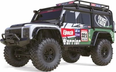 Actiongeladener Fahrspaß in jedem Gelände ist mit diesem Dirt Climbing Crawler 4WD von Amewi garantiert. Hier trifft coole Cross-Country Optik auf modernste Features. Mit einem starken Motor, dem 4WD Allradantrieb und den extra großen Reifen bewältigt der Pick-Up nahezu jedes Gelände und lässt sich mit der gut in der Hand liegenden Pistolenfernsteuerung mit moderner 2,4GHz Funktechnologie feinfühlig steuern. Auf dem stylischen Dachgepäckträger können kleine Dinge transportiert werden und von unten sorgen die Stoßdämpfer mit echten Metallfedern und der stabile Kunststoffrahmen für eine sichere Fahrt. Dank der spritzwassergeschützten Elektronik kann das „Beast“ auch mal durch feuchtes Gelände fahren und wenn es dunkel wird sorgt die LED-Beleuchtung vorne und hinten für gute Sicht. Der Dirt Climbing SUV ist RTR (Ready-to-Run) – das Set enthält alles, was nötig ist, um direkt mit der coolen Fahr-Action zu starten.