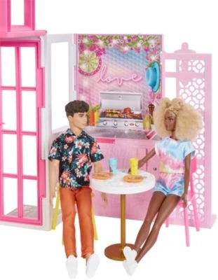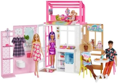 Dieses große Spielset von Mattel enthält ein zusammenklappbares Häuschen, eine wunderschöne Barbie und zahlreiches Zubehör! Barbie hat sich ein neues Haus gekauft und wundervoll eingerichtet. Dort fühlt sie sich so richtig wohl! Die hübsche Puppe trägt ein bezauberndes Kleidchen im Gänseblümchendesign und kann in ihrem Häuschen duschen, kochen, essen, es sich in der Kuschelecke bequem machen und vieles mehr.