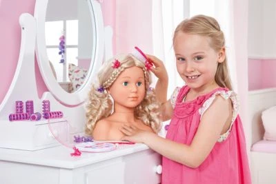 Mit dem tollen Deluxe Frisierkopf Super Model von BAYER können kleine Stylist*innen ihrer Kreativität freien Lauf lassen! Das wunderschöne blonde Haar wartet nur darauf, in den neusten Frisurentrends frisiert zu werden und mit der tollen Schminke und den Stickern werden die Looks noch abwechslungsreicher und individueller! Damit haben Kinder eine klasse Beschäftigung für zuhause, bei der sie ein Gefühl für verschiedene Stile entwickeln und sich über wunderschöne Ergebnisse freuen können. Und ganz nebenbei wird die Feinmotorik gefördert!