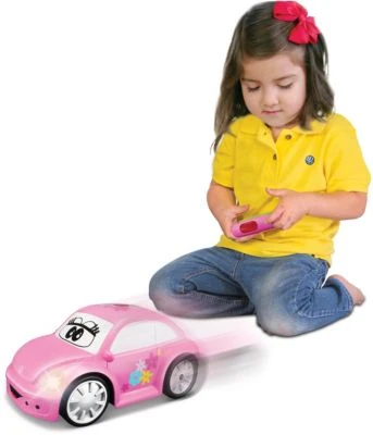 Das erste ferngesteuerte Auto für Ihr Kind. Der klassische VW Beetle kommt hier in einem farbenfrohen Design mit lustigem Gesicht daher. Die Fernbedienung ist kindgerecht auf die Jüngsten zugeschnitten und mit nur zwei Knöpfen sehr einfach zu bedienen.