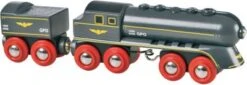 Dieses Produkt ist zu den meisten handelsüblichen Holzeisenbahnschienen kompatibel.