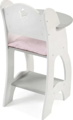 Kleine Puppeneltern möchten ihre Lieblinge so richtig verwöhnen. Ein tolles Zubehör ist dieser süße Puppen-Hochstuhl. Die Puppe darf auf dem weichen Sitzpolster Platz nehmen und kann über das Essbrettchen gefüttert werden.