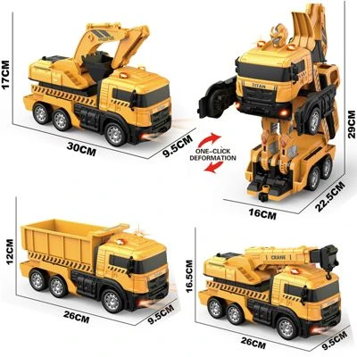 • Verwandlung in einen Roboter per Knopfdruck, ferngesteuerte Verwandlung, freier Wechsel zwischen zwei Formen: Baufahrzeug und Bauroboter.
