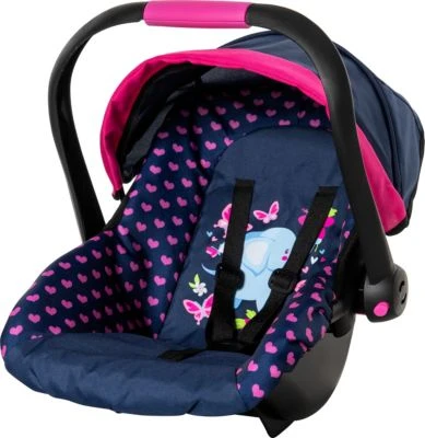 Der myToys-COLLECTION Deluxe Autositz mit Sonnendach zeigt sich mit hübschem Herzchendessin sowie einem zuckersüßen Elefantenmotiv. Der Autositz gewährleistet einen stabilen Halt und fällt nicht um, wenn die Puppe oder das Stofftier hineingelegt wird. Auch der integrierte Gurt sorgt für mehr Sicherheit, während der ergonomische Griff einen hohen Tragekomfort bietet. So kann der kleine Liebling leicht mitgenommen werden. Zusätzlich eignet sich der Autositz zum Aufstecken auf den Neo Vario Kombi-Puppenwagen.