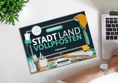 Lustiger Spielespaß nach dem beliebten Stadt-Land-Fluss-Prinzip! Mit dieser Denkriesen „Stadt Land Vollpfosten®: Job Edition“ ist ein lustiges Ratevergnügen für clevere und schnelle Denker*innen garantiert. Der Spielblock punktet mit 26 Kategorien und fördert Spaß und Kreativität. Kategorien sind zum Beispiel: Beruf, anderes Wort für “Geld”, bekannte Firma, dafür arbeitet man, geht gar nicht im Meeting und viele mehr! Mit dem Wischen über die Buchstabenleiste wird der Buchstabe gewählt und dann wird mit Zeitbegrenzung jede Spalte ausgefüllt. Pro Runde sind 8 Begriffe gesucht. Für spaßige Momente mit Kolleg*innen.