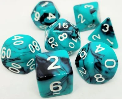 7-teiliges RPG-Würfelset bestehend aus den spieltypischen und relevanten RPG-Würfeln: