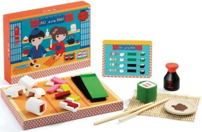 Сюжетно-ролевая игра Суши от французского производителя Djeco – интересная игра, которая понравится каждой девочке. Маленькая хозяюшка в игровой форме научится готовить японское блюдо – суши из игрушечных ингредиентов. И сможет представить себя шеф-паваром ресторана японской кухни. В комплекте: – 1 коврик из бамбуковых палочек для приготовления суши-роллов, – 2 палочки для суши, – 1 соевый соус, – 1 тарелка для соуса, – 25 элемента для приготовления суши-роллов, – 1 меню с рецептами, – деревянная коробочка – витрина. Набор продается в красочной деревянной коробочке, которая одновременно является рабочим столиком и витриной ресторанчика, а также может использоваться для хранения деталей набора. Размер коробки: 22,5 х 17,5 х 4 см. В процессе игры развиваются социальные и коммуникативные навыки, воображение, фантазия и мелкая моторика рук. Сюжетно-ролевые игры благоприятно влияют на раннее развитие ребенка, стимулируют развитие логического мышления, помогают ребенку примерять на себя разные социальные роли.