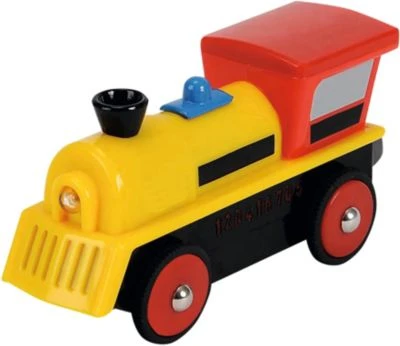 Eine tolle E-Lok für deine Eichhorn Eisenbahnlandschaft! Diese batteriebetriebene Lok verfügt über tolle Funktionen und einen 2-Rad-Antrieb. Sie kann vorwärts und rückwärts fahren und hat Licht.
