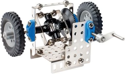 Der Metallbaukasten C07 enthält alle Teile zum Bau von mindestens 6 Modellen. Es können verschiedene Getriebevarianten gebaut werden. Das Set beinhaltet über 250 Teile, inklusive eines schaltbaren Batteriekastens. Die Bauteile bestehen größtenteils aus verzinktem Bandstahl. Das passende Montagewerkzeug und eine detaillierte Bauanleitung sind im Lieferumfang des Artikels enthalten.