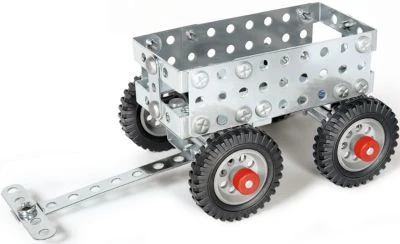 Mit dem Metallbaukasten C06 lassen sich mindestens 8 verschiedene Modelle bauen. Mit über 270 Teilen, dem passenden Werkzeug und verschiedenen mechanischen Funktionen ist dieses pädagogisch wertvolle Spielzeug ideal für kleine Schrauber. In einer bebilderten Anleitung wird jeder Schritt detailliert beschrieben. Wie in einer richtigen Werkstatt entsteht Schritt für Schritt die Konstruktion. Die Stahl-Winkel, Bleche und Streben werden mit Schrauben und Muttern verbunden. Nach Fertigstellung eines Bauwerkes lässt sich die Konstruktion einfach wieder zerlegen. Somit ist unbegrenzter Spielspaß also garantiert! Durch die Metallbaukästen von eitech wird spielerisch die kindliche Entwicklung gefördert: Während Kinder bauen und konstruieren, trainieren sie Kreativität, motorische Fähigkeiten und logisches Denken.