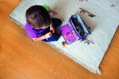 • Eine Klappe mit Klettverschluss hält die Spielplatte während des Transports. Die Platte kann zur Reinigung abgenommen werden