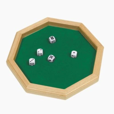 Hochwertiger Würfelteller aus Holz mit Filz- Inlay. Schont Ihre Tischoberfläche und bewahrt die Würfel davor, über das Ziel hinauszuschießen.
