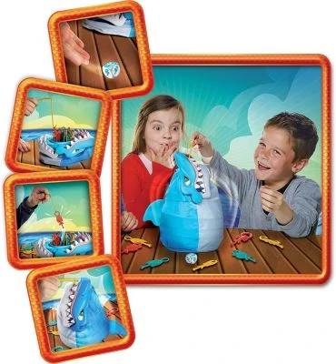 Wirf den Würfel und fange so viele Fische wie möglich! Aber Achtung! Der verrückte, gefräßige Hai lauert im Hinterhalt. Er kann jederzeit zuschnappen.Die lustige Angelrunde wird gewonnen, wenn Fische anbeißen!