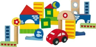 Es darf gebaut werden! Das GOULA Holzbausteine-Set ist der perfekte Einstieg in die faszinierende Welt des Bauens! Die Bauklötze sind aus robustem Holz gefertigt und extra für kleine Hände gemacht. Die bunten Klötze regen zum Bauen an und punkten mit ganz unterschiedlichen Formen. In dem Set enthalten sind eine Brücke und ein Auto und viele andere Formen. Ganz nebenbei werden die Feinmotorik und die Hand-Augen-Koordination trainiert und die Kreativität angeregt. An die Klötze, fertig, los!