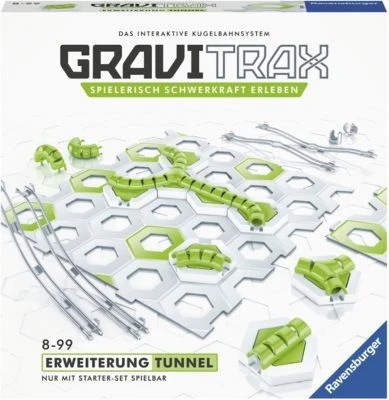 Mit dem coolen GraviTrax Ergänzungsset Tunnel sorgst du für einen Überraschungseffekt im Verlauf deiner Kugelbahn. Kombiniere das Tunnelsystem mit den Schienen und Bodenplatten deines GraviTrax-Sets und schon kann der große Bau- und Kugelspaß losgehen! Baue komplexe Strukturen, durch die dann die Kugeln hindurchrasen können.