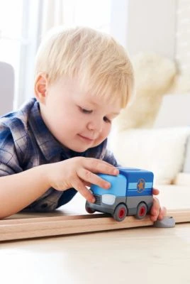 der blaue Batterie-LKW von Kullerbü fährt dank raffiniertem Batterieantrieb von selbst durch die Bahnen 1 Fahrzeug, 2 Antriebsweisen: leistungsstarker 4-Rad-Antrieb und manuelle Antriebsweise batterieschonend: Fahrzeug stoppt automatisch nach 1 Minute auch perfekt fürs freie Spielen am Boden geeignet Der blaue Batterie-LKW bringt noch mehr Fahrspaß in die aufregende Kullerbü-Spielwelt von HABA. Dank raffiniertem Batterieantrieb fährt das Kullerbü-Fahrzeug von selbst durch die Bahnen. Besonders praktisch: Um die Batterie zu schonen, stoppt das Fahrzeug automatisch nach einer Minute. Wer mag, kann den Batterie-LKW natürlich auch manuell bedienen, zum Beispiel fürs freie Spielen am Boden. Die Kullerbü-Fahrzeuge mit Batterieantrieb sorgen für noch mehr Tempo auf den Bahnen und begeistern junge Autofans ab 2 Jahren. Sie sorgen für viel Abwechslung und schulen ganz nebenbei feinmotorische Fähigkeiten. Art Batterie oder Akku: 9V Block Bewegungsart: Schieben mit der Hand Anzahl Batterie oder Akku: 1 Stück Outdoorgeeignet: Nein Alter bis: 8 Jahre Alter von: 2 Jahre Gewicht Produkt: 0,156 kg Höhe: 6,6 cm Breite: 5,7 cm Länge: 10,3 cm Material: Kunststoff, Metall