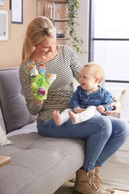 Ob zuhause oder unterwegs, der Spielhandschuh von Haba unterhält den Nachwuchs mit lustigen Bauernhofgestalten und spannenden Geräuscheffekten. Spielhandschuh von Haba Handschuh-Finger im Design von Gans, Kuh, Pferd, Baum und Haus mit abnehmbarem Traktor-Element unterschiedliche Geräusche: Klingeln, Knistern und Klappern ab 18 Monaten geeignet Jeder Finger des Spielhandschuhs stellt ein anderes Motiv dar: Kuh, Pferd und Gans gehören ebenso zum Bauernhof wie der Apfelbaum und das Bauernhaus. Mit nur einem einzigen Spielzeug lässt sich so eine ganze Welt zum Leben erwecken. Zusätzliche Sound-Effekte machen die Bauernhof- und Tiergeschichten noch interessanter. Als besonderer Clou bietet der Handschuh ein per Klettverschluss abnehmbares Traktor-Element.