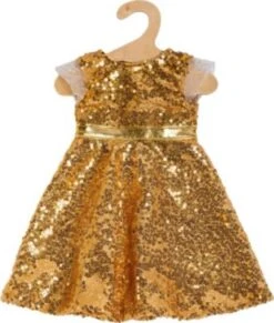 Mit diesem funkelnden Puppenkleidchen „Goldstar“ aus dem Hause Heless ist die Lieblingspuppe klasse für festliche Anlässe gekleidet! Das hübsche Kleid begeistert mit glitzernden Pailletten, einem glänzenden Gürtel sowie Tüllrüschen an den Schultern. Dank des praktischen Klettverschlusses lässt das Kleid sich einfach an- und ausziehen.