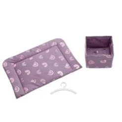 Besonders praktisch ist der große Stoffkorb, in dem sämtliche Puppenutensilien aufbewahrt werden können.