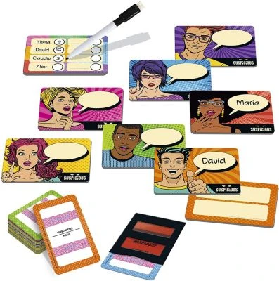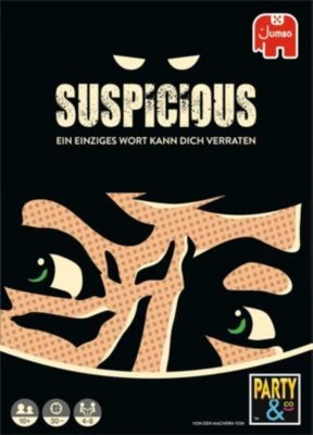 Im Spiel Suspicious von Jumbo ist jede Person verdächtig, denn niemand weiß, wer die*der Spion*in ist. Mit Ausnahme einer Person erhalten alle dasselbe geheime Codewort. Mit sorgfältig gewählten Hinweisen beschreibst du dein geheimes Codewort und versuchst herauszufinden, auf welcher Seite du stehst. Doch Vorsicht – vielleicht bist DU ja die*der Spion*in.