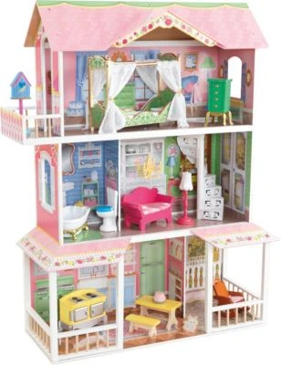 Das KIDKRAFT-Puppenhaus „Sweet Savannah“ bietet drei Ebenen, vier Zimmer und zwei toll gestaltete Außenbereiche für kreatives Spielen. Es ist im verspielten Stil eines Südstaaten-Hauses aus den USA gehalten. Die Puppenstube ist mit über einem Meter Höhe so groß, dass Kinder gut gemeinsam spielen können. Das vielfältige Zubehör-Set inklusive Vogelhaus und Katze verspricht unendliche Spielmöglichkeiten und spannende Erlebnisse für Puppen.