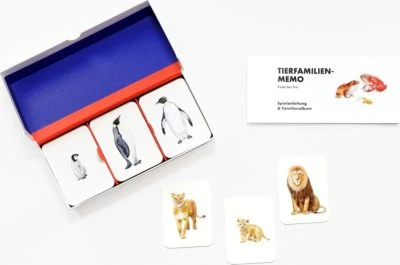 In diesen fünfzehn Tierfamilien gibt es einige schwarze Schafe und hässliche Entlein – warum nur sehen sienicht alle gleich aus? Wer weiß, welche drei jeweils zu einer Familie gehören und kann sich auch noch merken, wo die entsprechenden Karten lagen? Das beste Gedächtnis gewinnt! Das etwas andere Memo, bei dem man das passende Trio finden muss Drei Tiere derselben Familie, zwei sehen sich ähnlich, doch das dritte fällt aus der Reihe Enthält ein Booklet, das erklärt, warum die Tiere nicht alle gleich aussehen