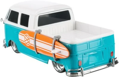 – detailgetreue Verarbeitung mit klassischer Lackierung, getönten Scheiben und einem abnehmbaren Surfbrett