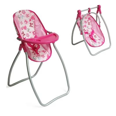 Puppenhochstuhl und Puppenwippe in einem leichte Umwandlung in der Farbe pink mit Sicherheitsgurt mit Bechervertiefung ab 3 Jahre