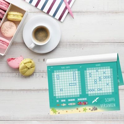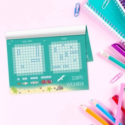 Der Spieleklassiker für jede Altersklasse. Für das Spiel Schiffe versenken benötigt man nur einen Stift und der Spielspaß kann los gehen. Auch schön als Give Away, Mitbringsel, Goodie zum Kindergeburtstag oder als Kleinigkeit für die Zuckertüte zum Schuleintritt.