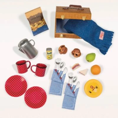 Packe deinen Picknickkorb mit allerlei Leckereien und genieße einen tollen Sommertag mit deinen Puppenfreundinnen von Our Generation! Ob herzhafte Sandwiches, süße Muffins oder lieber Obst, hier ist für jeden etwas dabei. Das gepunktete Picknickgeschirr ist zudem ein echter Hingucker!