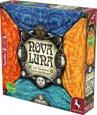 Dieses Legespiel ist für die ganze Familie geeignet und steckt voller strategischer Entscheidungen. In „Nova Luna“ von Pegasus müssen die Spieler mit der Auslage der Monduhr effektiv umgehen, um spannende Aufgaben zu erfüllen. Jede Entscheidung bringt dabei weitreichende Konsequenzen für die Zukunft mit sich. Besonders toll: Eine Soloregel ermöglicht auch das Spiel alleine.