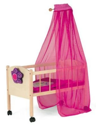 In diesem romantischen Bettchen Schlafen Püppchen gut. Der wogende pinke Himmel passt zu der hübschen Bettwäsche und für „Happy Fee“-Artikel typischen abnehmbaren Stoffblume. Dank der Rollen unter dem Bett kann die Puppenmami das schlafende Püppchen immer mitnehmen und ein Auge auf die Kleine haben. Für ein noch realistischeres Mutter-Kind-Rollenspiel!