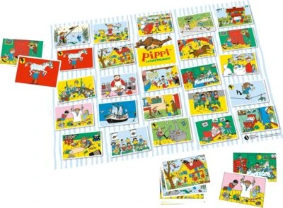 Jetzt geht es mit Pippi auf zur lustigen Sachensuche. Mit dem schnellen Reaktionsspiel heißt es: hinsehen, zuhören und kombinieren! Es geht in jeder Runde darum, ein Kartenmotiv zu erraten. Wer die Karte auf der Hand hat, gibt Hinweise anhand derer die anderen versuchen zu erraten, um welches Motiv es sich handelt. Wer zuerst richtig rät, gewinnt die Karte und wer am meisten Karten sammelt, gewinnt das Spiel. Das Spiel endet, sobald der Pippi-Kartenstapel aufgebraucht ist. Wer dann die meisten Pippi-Karten gesammelt hat, gewinnt das Spiel. Merkt euch gut, welche Bilder schon getippt oder erraten wurden. Das gibt wichtige Tipps, welche Bilder noch zur Auswahl stehen.