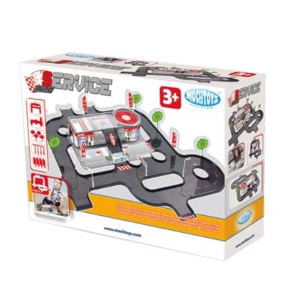 Weitere Informationen zum Artikel Mochtoys Servicestation mit Teststrecke 10941, Parkplatz, Hubschrauberlandeplatz