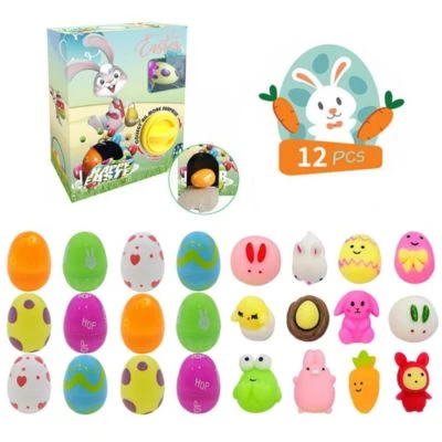 – Vorgefüllte ostereier hat 6 farbige eier, darunter 12 squeeze spielzeug, jedes ei hat 2 innen, verschiedene stile, oder um kleine gegenstände selbst zu füllen; bereiten sie eine osterüberraschung für kinder vor!