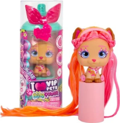 Hier kommen die niedlichen und bezaubernden Hundepuppen aus der VIP Pets Bow Power Kollektion zur beliebten YouTube-Serie. Die superlangen und bunten Haare sind perfekt zum Kämmen und immer wieder neu stylen. Jeder der niedlichen Charaktere begeistert kleine Fans ab 3 Jahren mit 9 Überraschungen und 6 Accessoires, um den neuesten Look zu kreieren – so wie die Star-Friseure in der bekannten YouTube-Serie! Natürlich ist auch der passende Frisierstuhl dabei, um die 30 cm langen Haare zu stylen.