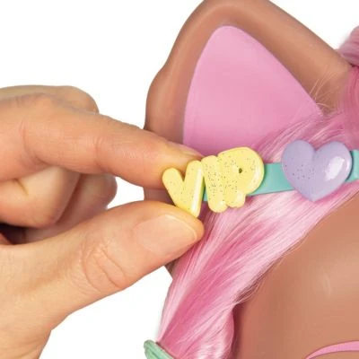 Bei dieser traumhaften Walle-Mähne kommen kleine Friseur*innen ins Schwärmen. Die langen Haare der süßen Nyla sind ein Traum in Pink und bieten der Kreativität die besten Möglichkeiten. Hochsteckfrisuren, geflochtene Haare oder Zöpfe können bei dieser Haarpracht entstehen. Insgesamt dreißig Accessoires sind im Set enthalten und bieten Kids die Möglichkeit, sich tierisch-schöne Frisuren auszudenken.