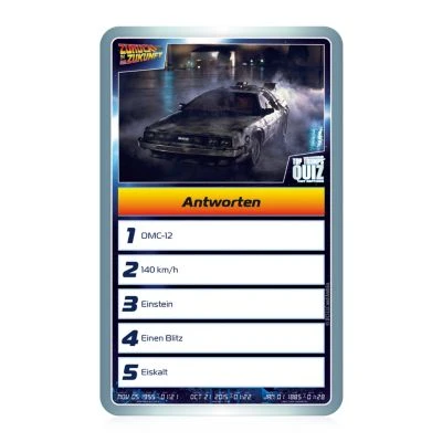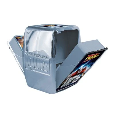 Die Filme rund um Marty McFly und Dr. Emmett L. Brown haben mittlerweile einen Kultstatus erreicht. Du glaubst dich gut mit dem Fluxkompensator, Hill Valley und den Charakteren der Trilogie auszukennen? Dann schnapp‘ dir deine Freunde und beweise dein Wissen in 500 spannenden Fragen und Antworten auf 100 Karten im brandneuen TOP TRUMPS QUIZ Zurück in die Zukunft. Dank der praktischen Box mit zwei Klappfächern steht einem Quizduell zuhause oder sogar unterwegs nichts im Wege – egal ob im Jetzt, der Vergangenheit oder Zukunft!